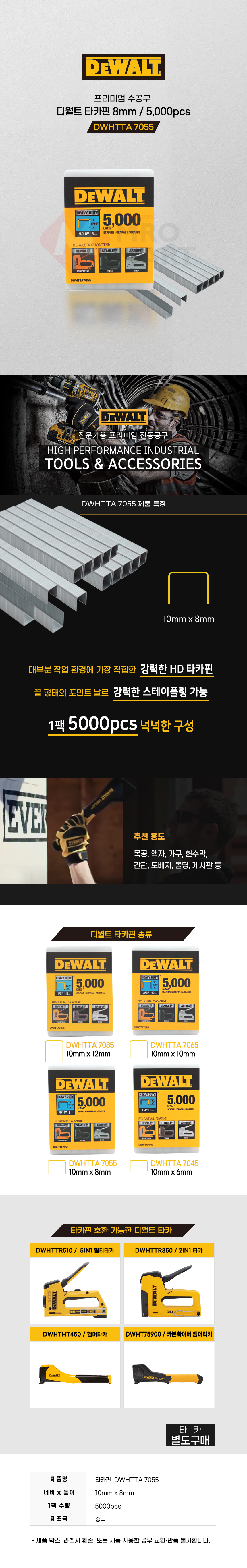 디월트 목공용 HD 건타카 손타카 타카핀 8mm 5000pcs DWHTTA7055