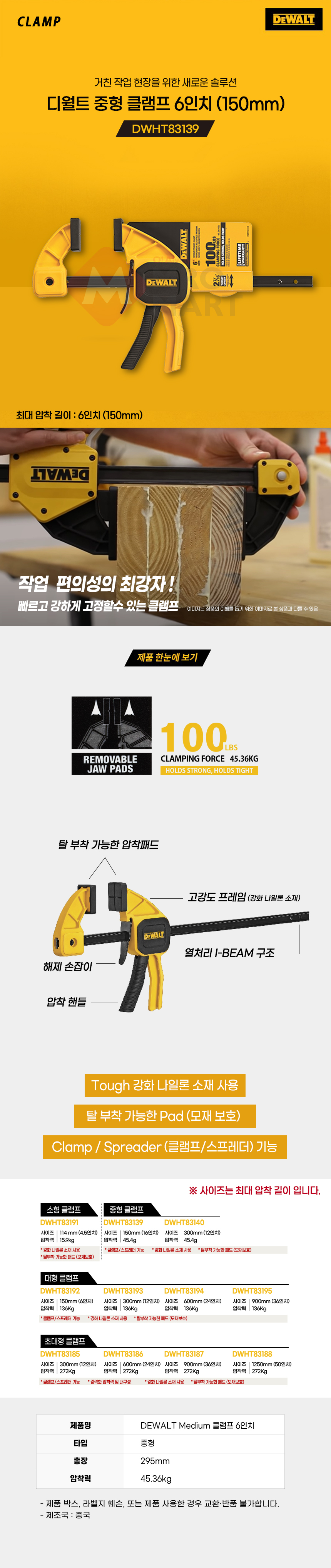 디월트 목재 목공용 중형 트리거 클램프 6인치 150mm DWHT83139