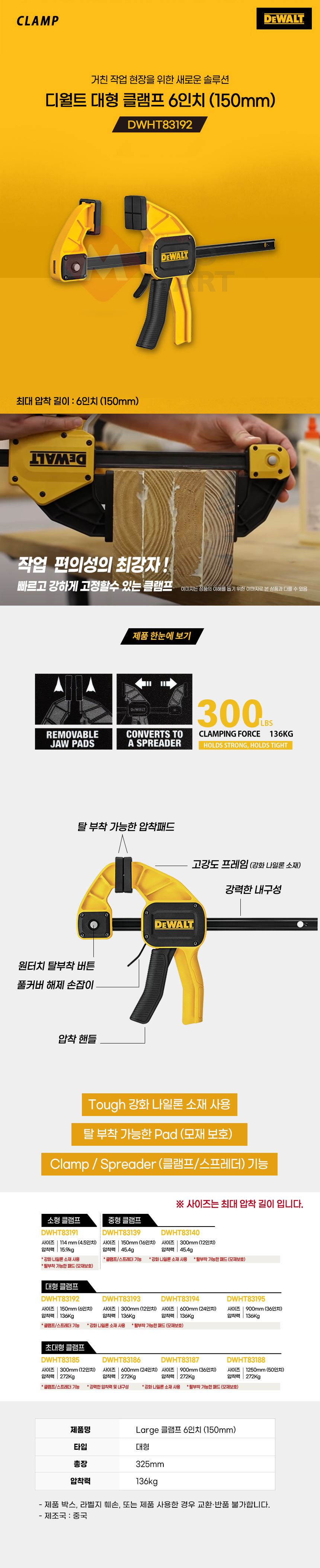 디월트 목재 목공용 대형 트리거 클램프 6인치 150mm DWHT83192