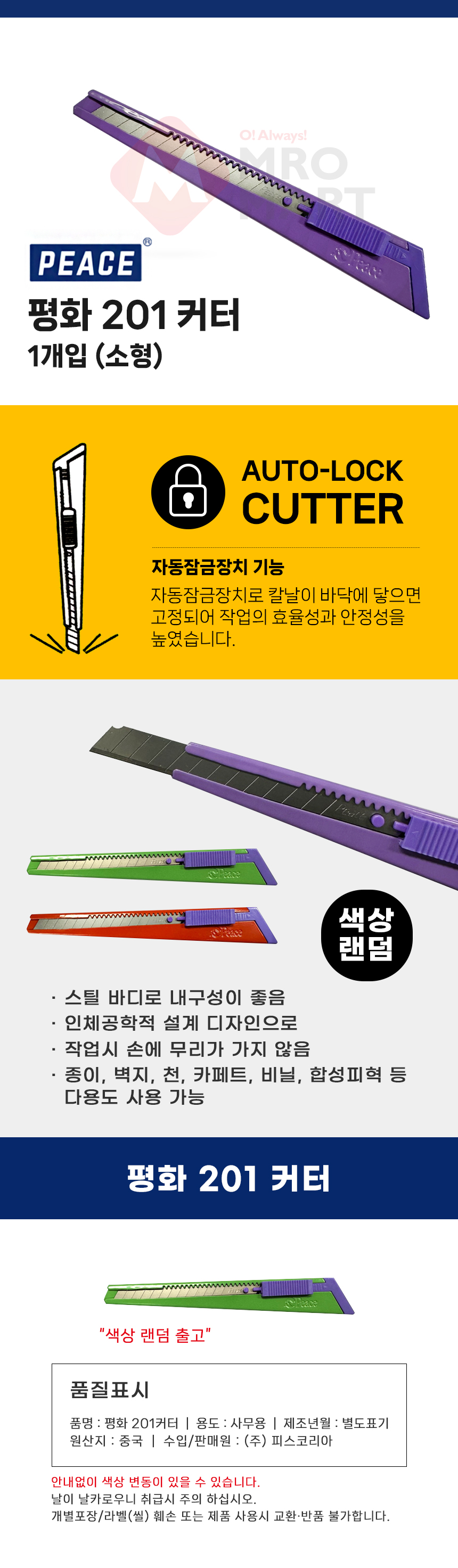 피스 201 커터 소형 커터칼 컷터칼 사무용 색상랜덤