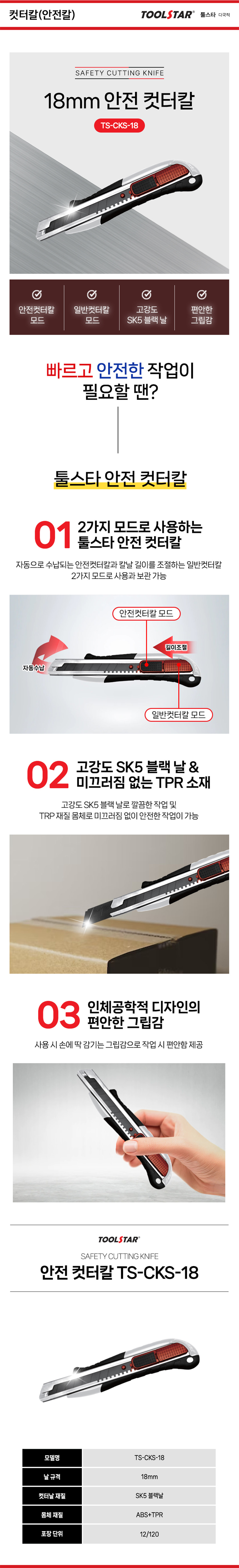 툴스타 18mm 안전 컷터칼 TS-CKS-18 커터칼 안전칼 다용도