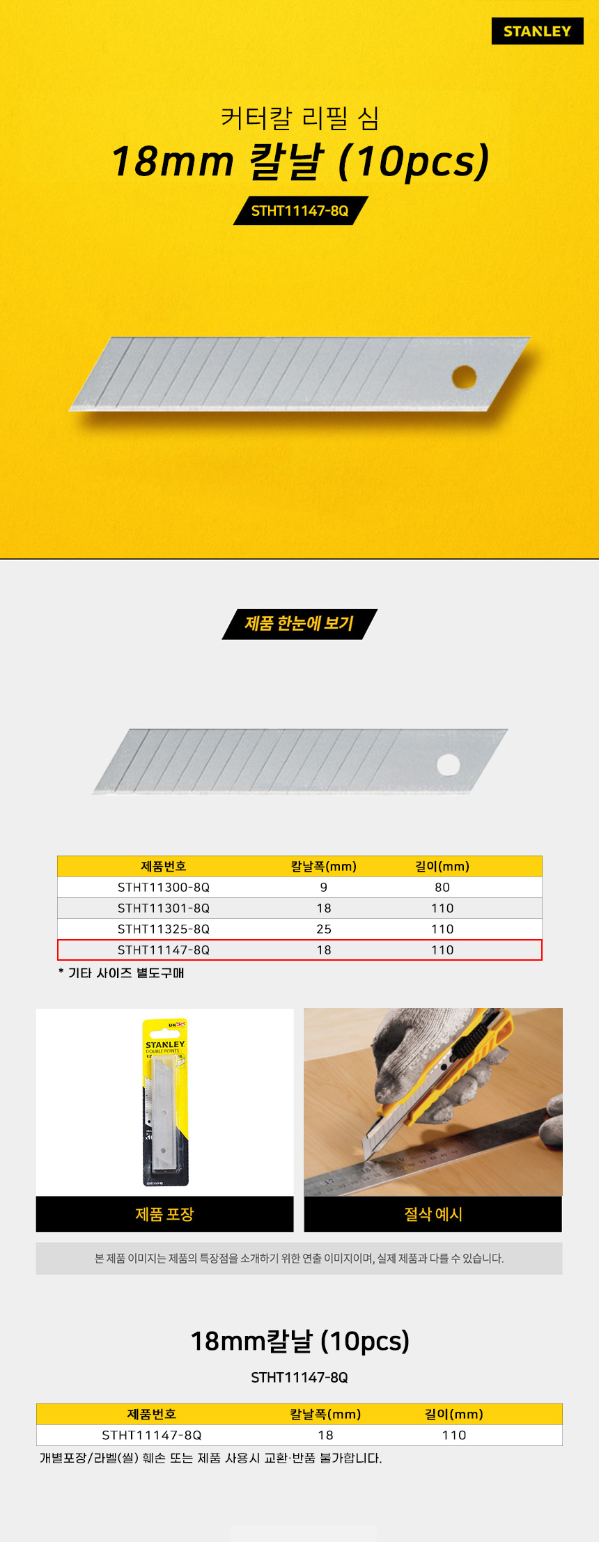 스탠리 더블 포인트 칼날 18mm 10PCS STHT11147-8Q