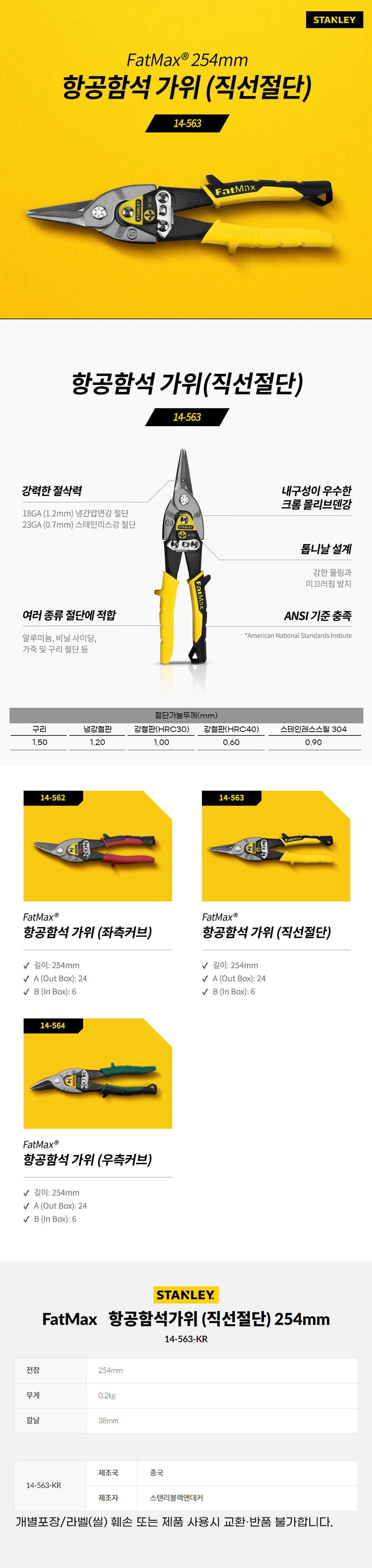 스탠리 항공 함석 가위 직선절단 254mm 14-563