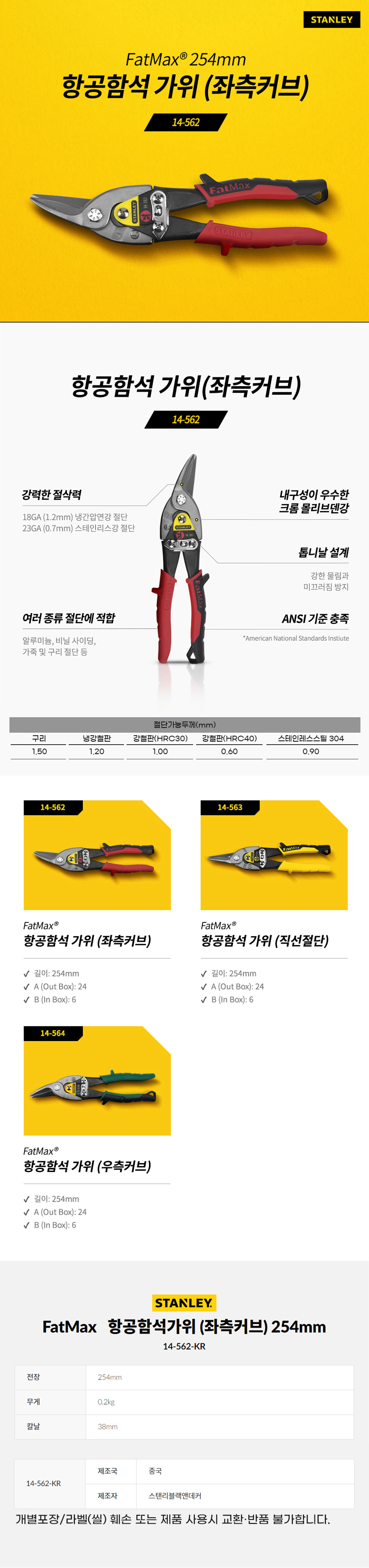 스탠리 항공 함석 가위 좌측커브 254mm 14-562