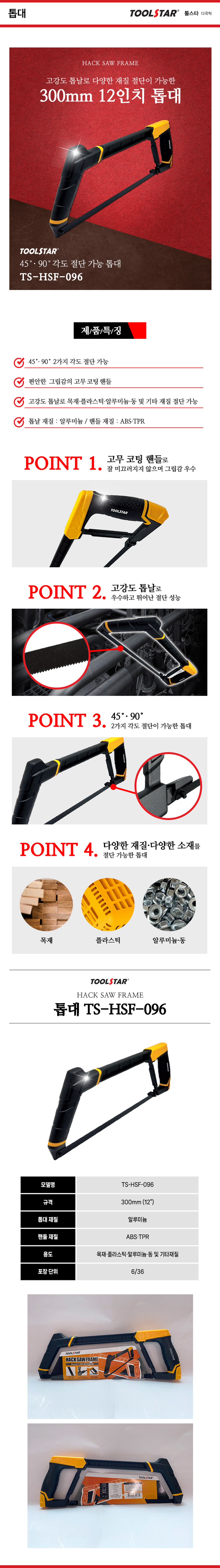 툴스타 톱대 TS-HSF-096 300mm 12인치 쇠톱 톱 수공구 절단 컷팅 목재 플라스틱 알루미늄