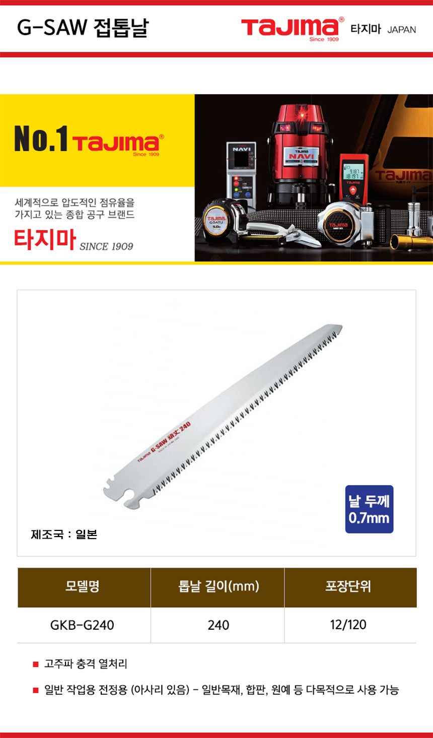 타지마 G-SAW 교체날 접톱날 GKB-G240 목재 합판 원예 톱 접톱 목공 수공구