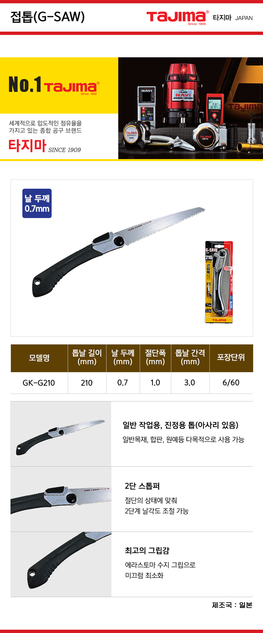 타지마 G-SAW 접톱 GK-G210 목재 합판 원예 톱 목공 수공구
