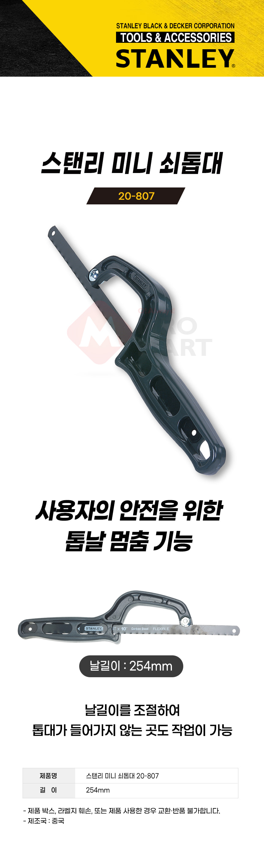 스탠리 20-807 미니 쇠톱대 미니톱 톱대 톱날 톱 조절 절단 절삭 수공구