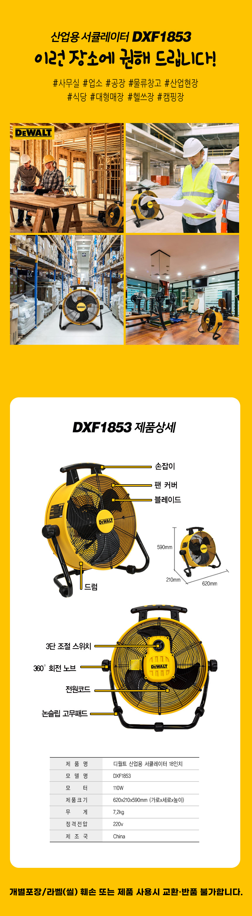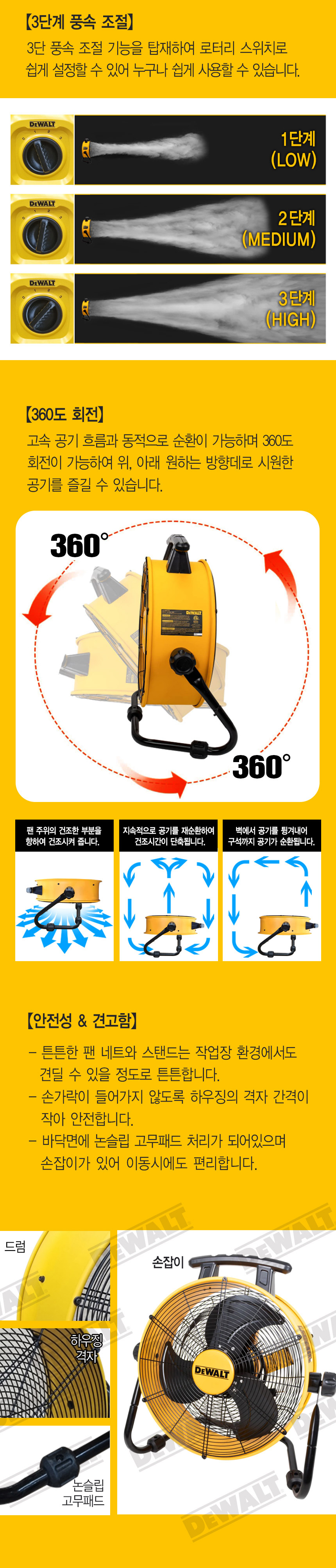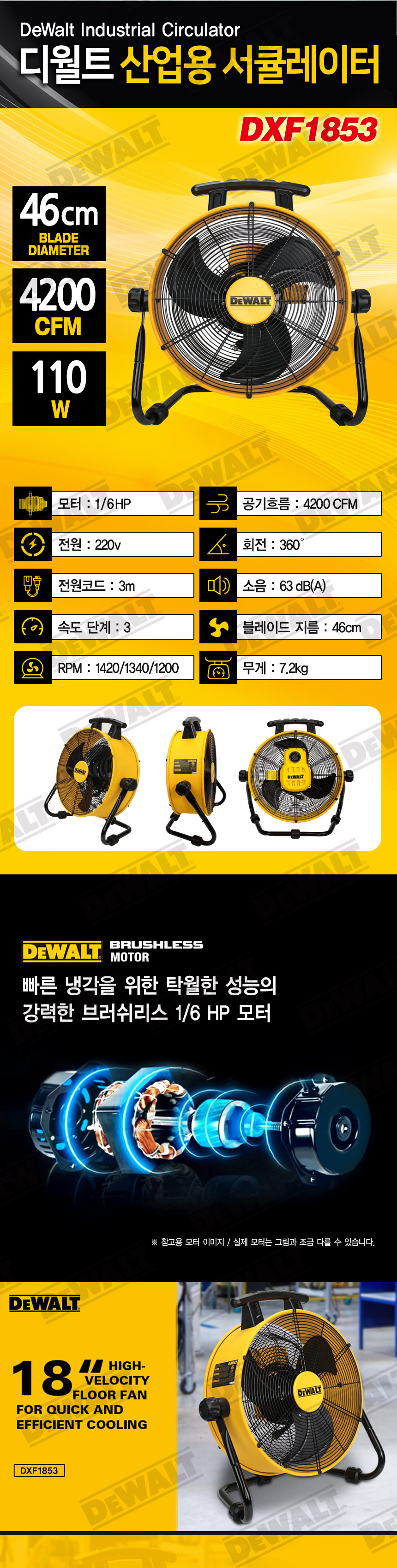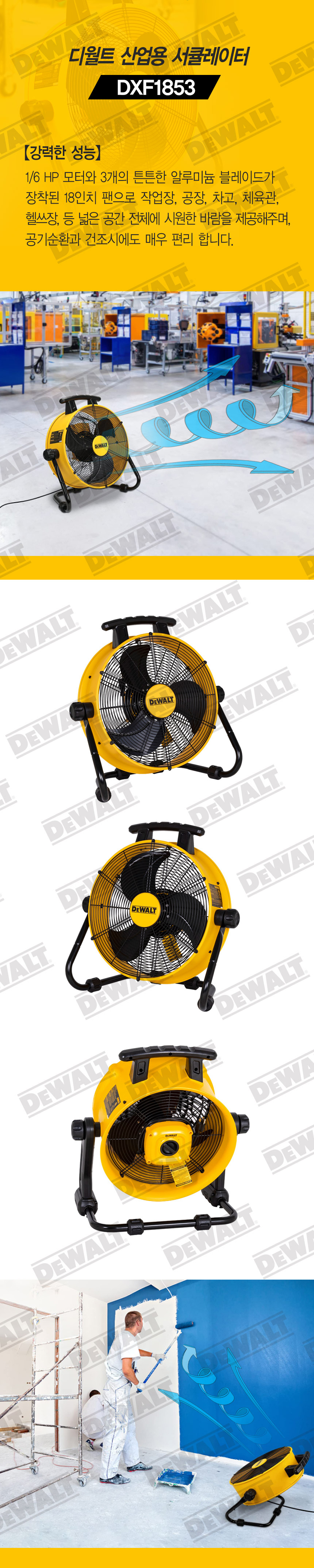 디월트 110W 유선 산업용 서큘레이터 18인치 DXF1853 선풍기 강풍기 대형 공업용 작업용 터보팬