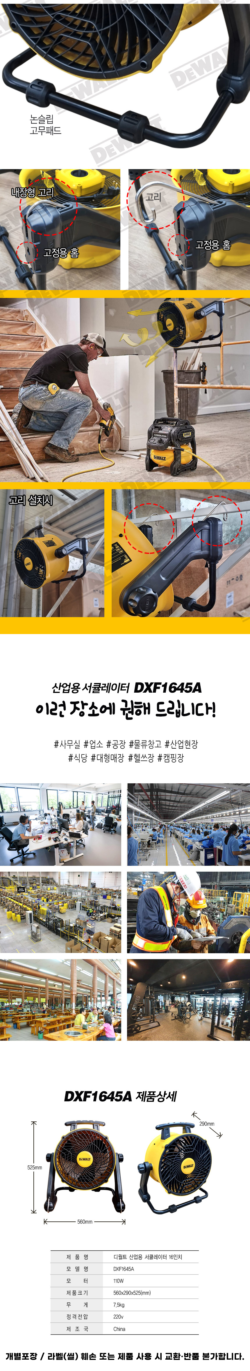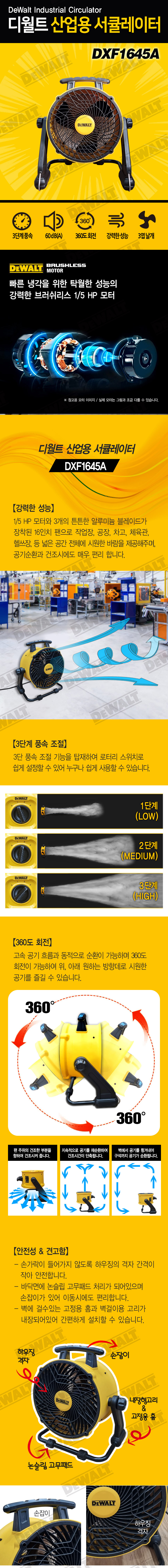 디월트 110W 유선 산업용 서큘레이터 16인치 DXF1645A 선풍기 강풍기 대형 공업용 작업용 터보팬