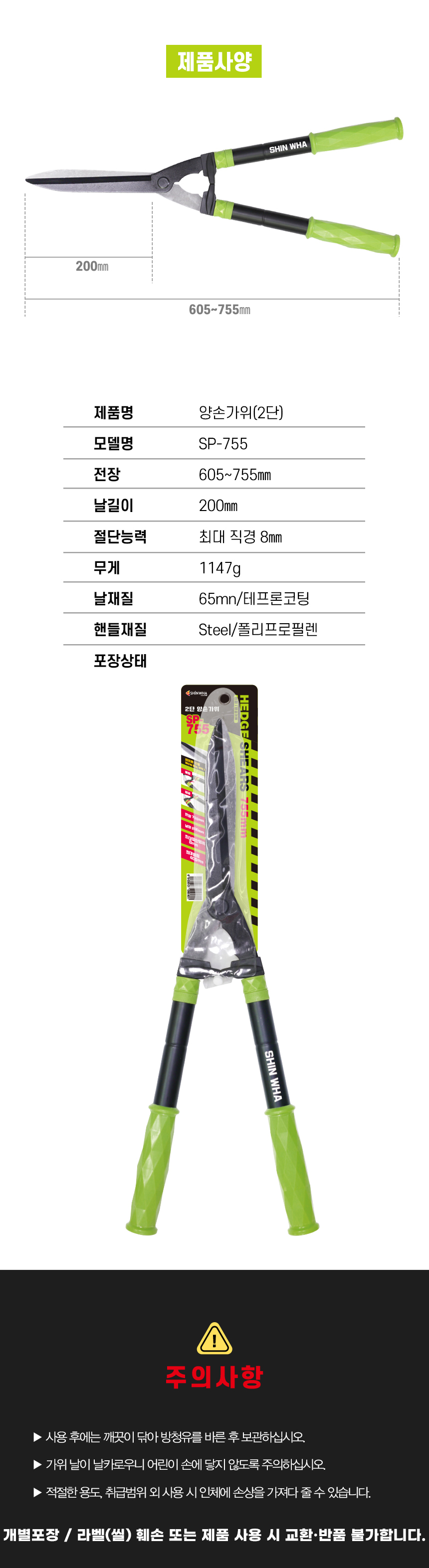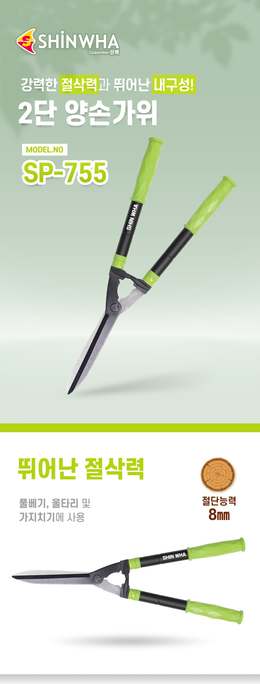 신화 2단 양손가위 SP-755 605~755mm 풀베기 원예 정원 조경 전정 가지치기 초경량