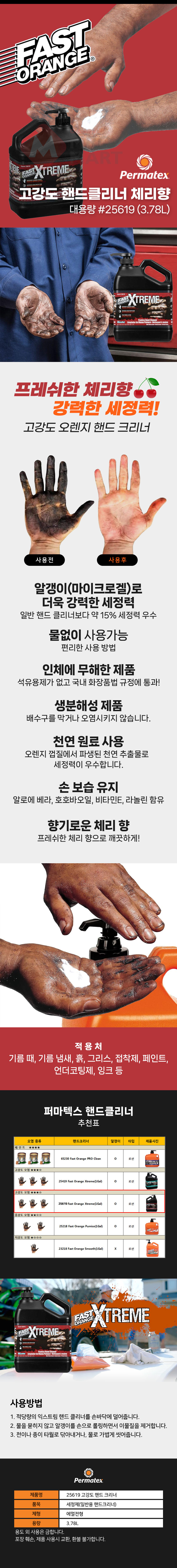 퍼마텍스 25619 대용량 고강도 핸드 크리너 체리향 3.78L 산업용 기름때 그리스 손 세정제 공장 정비 알갱이 타입