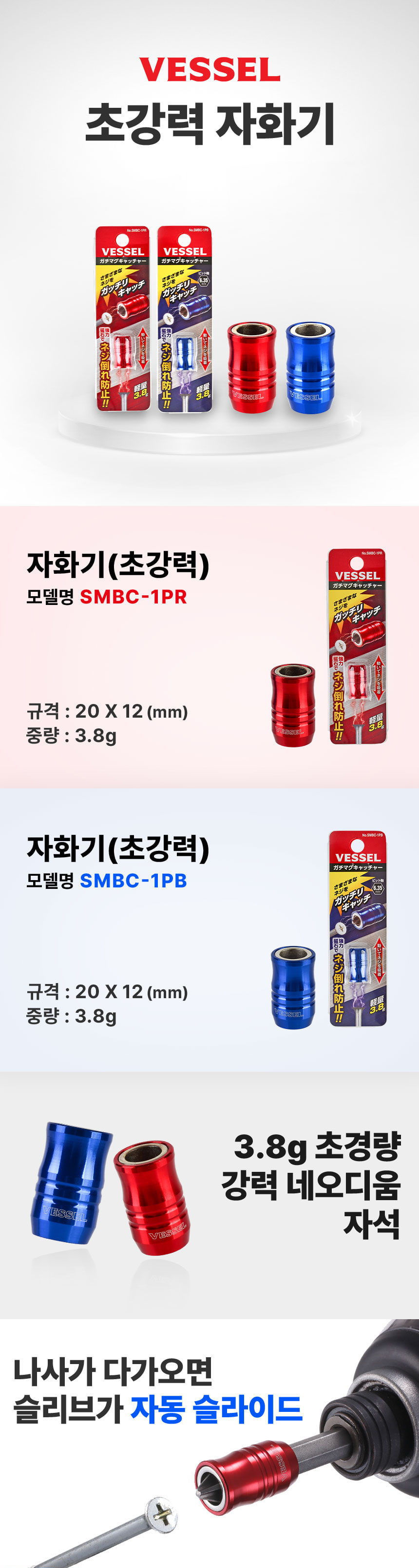 베셀 초강력 자화기 SMBC-1PR 빨강 링 자석 마그네틱 드라이버 비트
