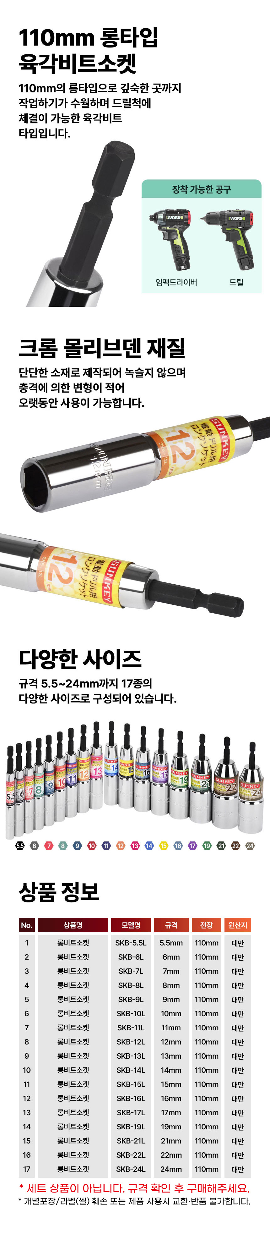 썬키 SKB-11L 롱 비트 소켓 11mm 롱복스 복스알 일체형 임팩 드릴
