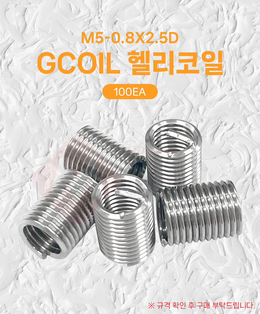 지코일 헬리코일 M5 0.8x2.5D 100EA 리코일 인서트 인써트 헤리코일 나사산 보수 보강재