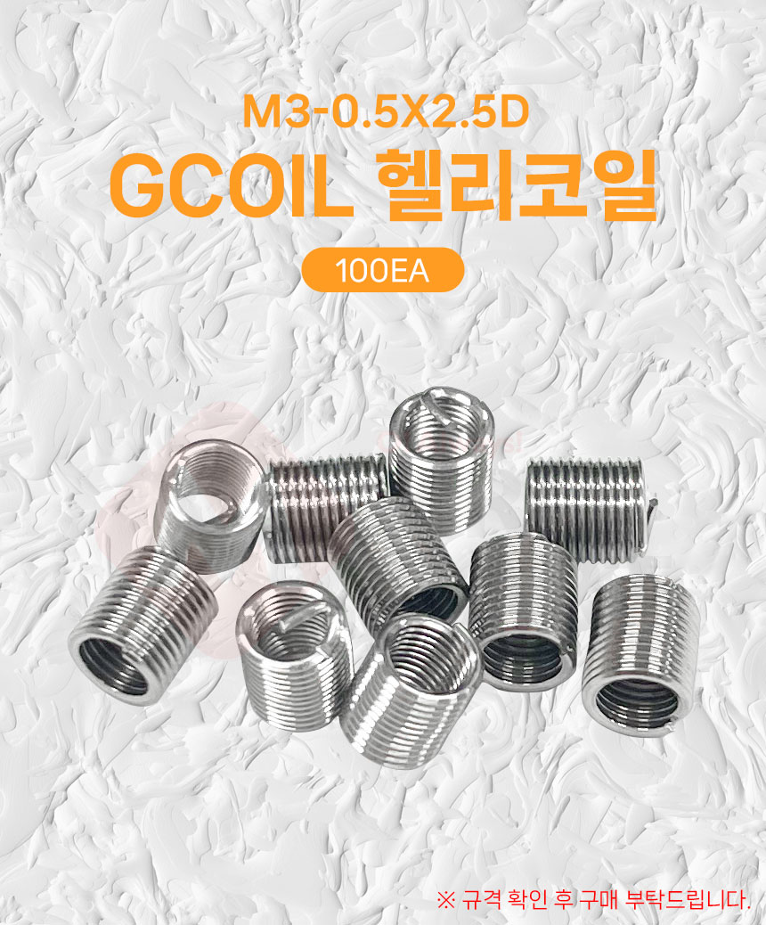 지코일 헬리코일 M3 0.5x2.5D 100EA 리코일 인서트 인써트 헤리코일 나사산 보수 보강재
