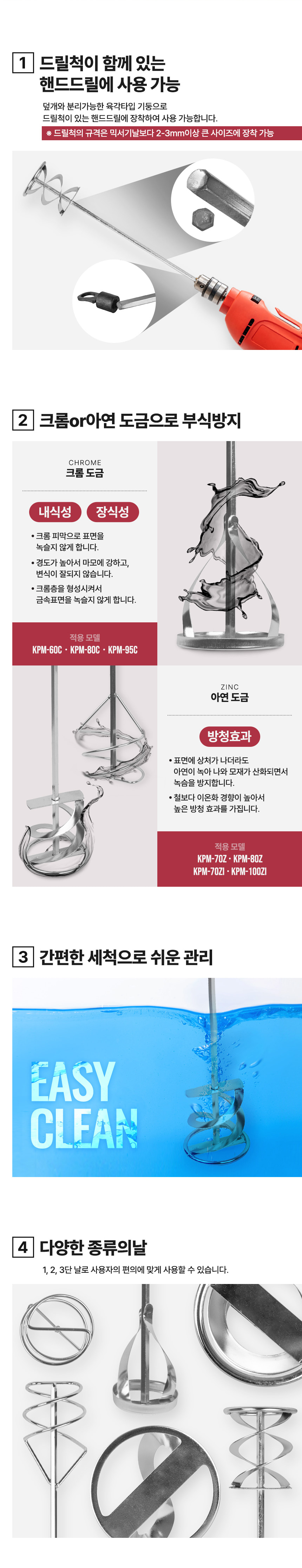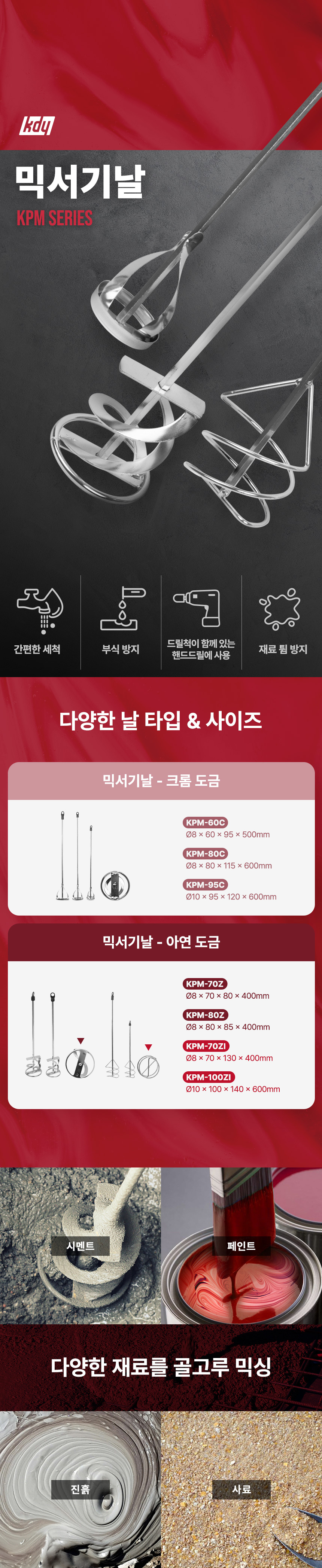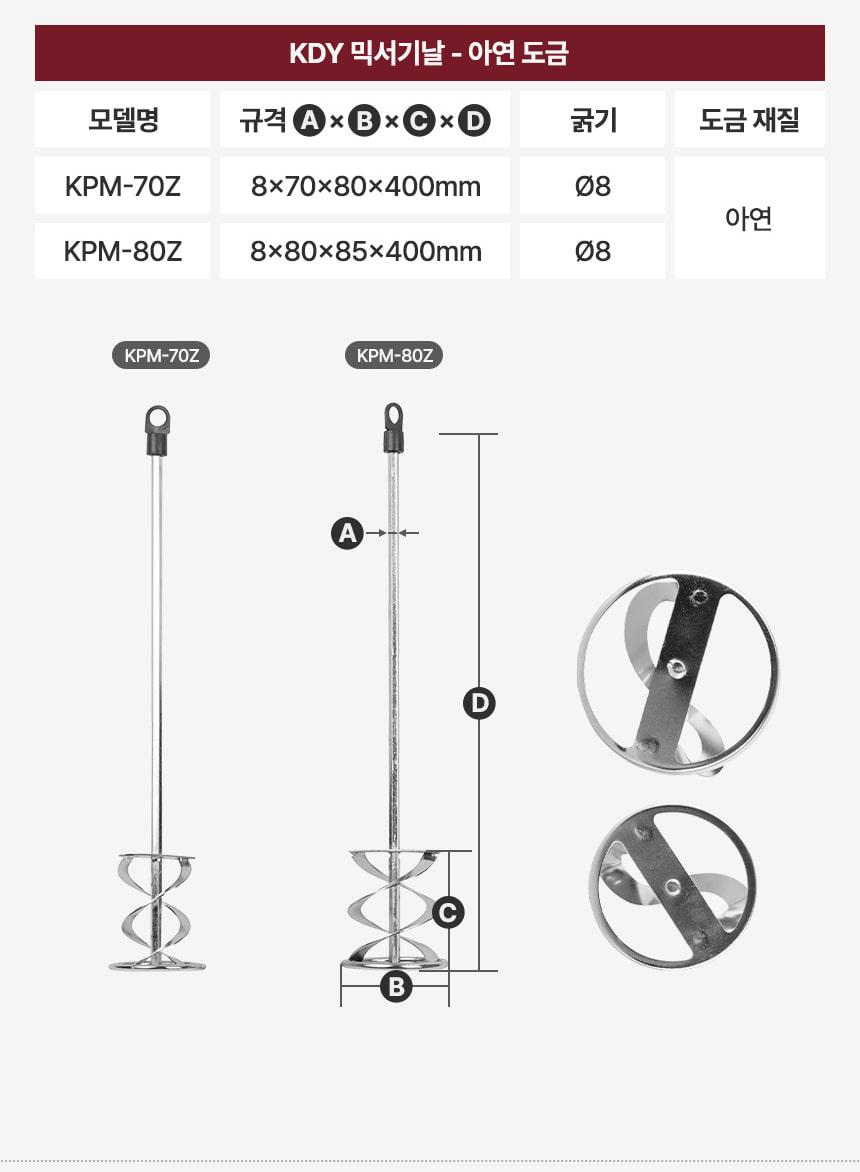 KDY 믹서기날 KPM-80Z 8x400mm 육각 아연도금 교반기날 페인트 시멘트 혼합 반죽 믹서 믹싱 드릴날