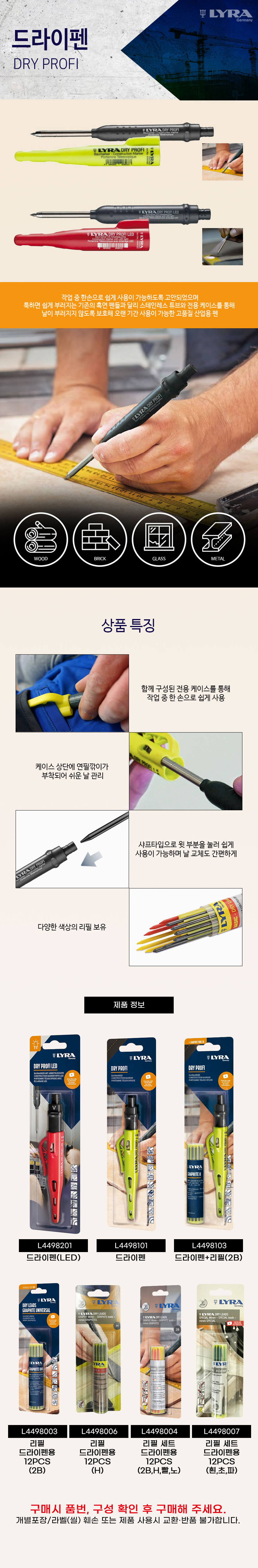 리라 L4498006 드라이펜 리필 B 12PCS 교체용 교체심 산업용 마킹펜 샤프타입 목재 벽돌 유리 금속