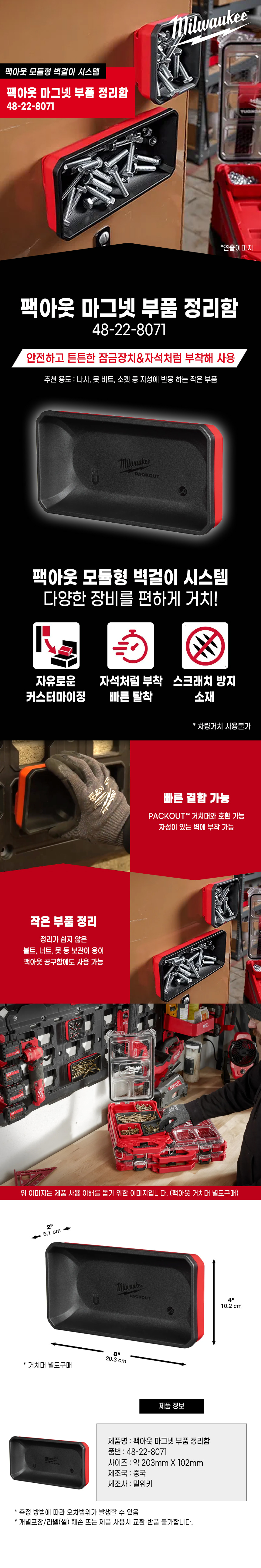 밀워키 팩아웃 마그넷 부품 정리함 48-22-8071 자석 부착 벽걸이 비트 못 정리