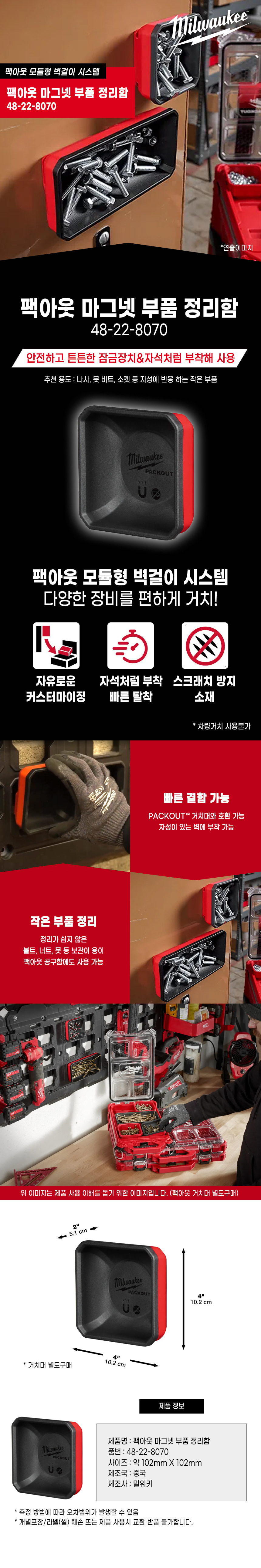 밀워키 팩아웃 마그넷 부품 정리함 48-22-8070 자석 부착 벽걸이 비트 못 정리