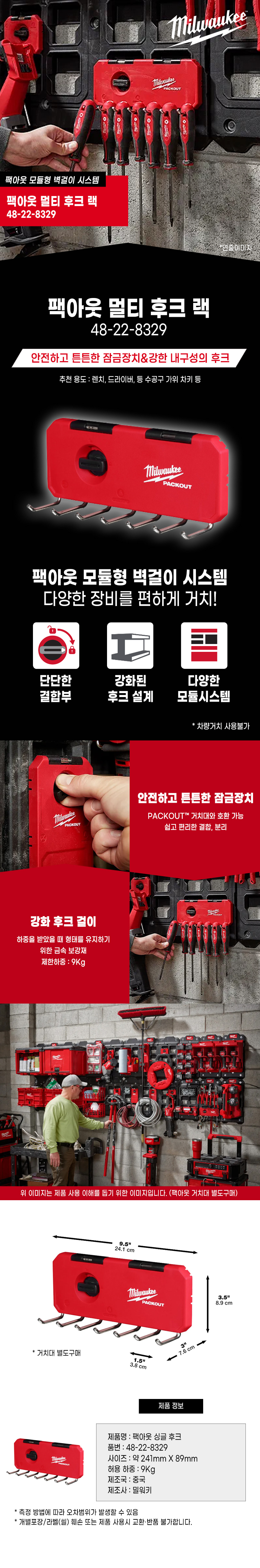 밀워키 팩아웃 멀티 후크 랙 48-22-8329 수공구 공구 걸이 벽걸이 정리 고리