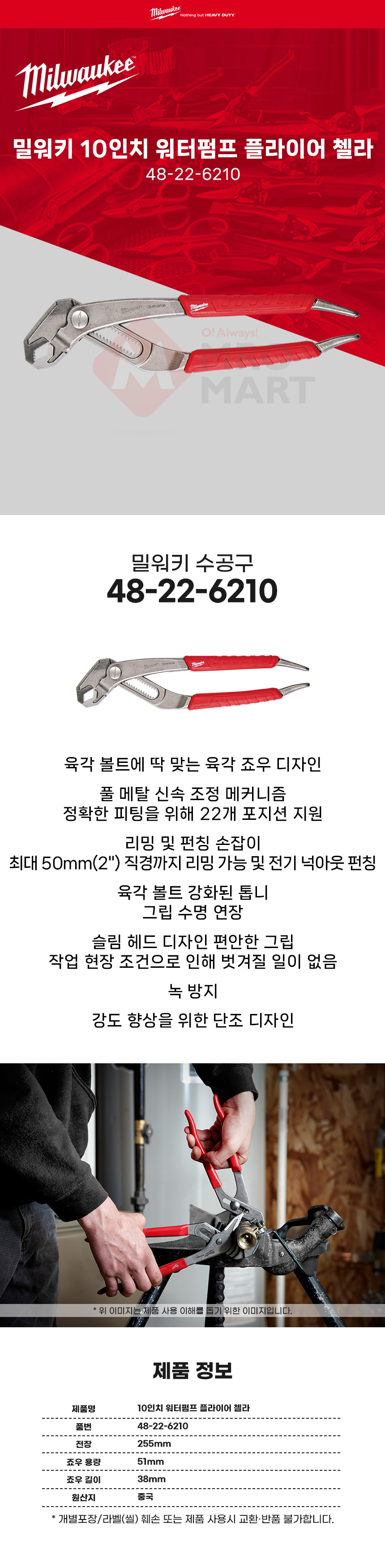 밀워키 10인치 워터펌프 플라이어 첼라 48-22-6210 수공구
