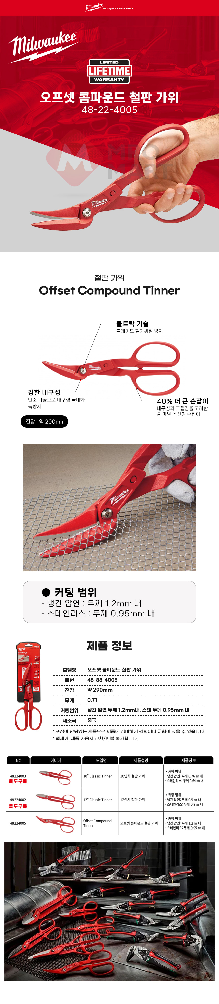 밀워키 오프셋 콤파운드 철판 가위 48-22-4005 항공 함석 스테인레스 절단 컷팅