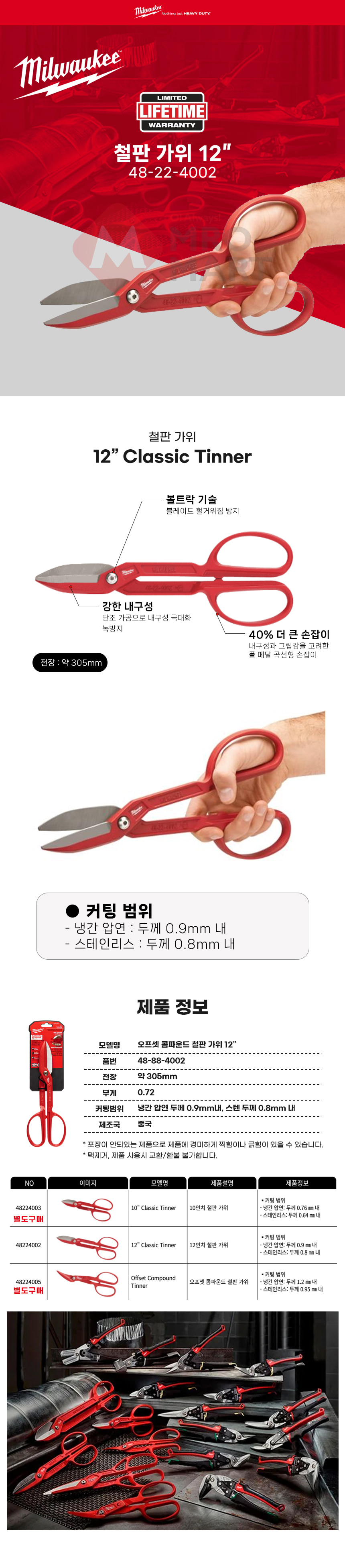 밀워키 12인치 철판 가위 48-22-4002 항공 함석 스테인레스 절단 컷팅