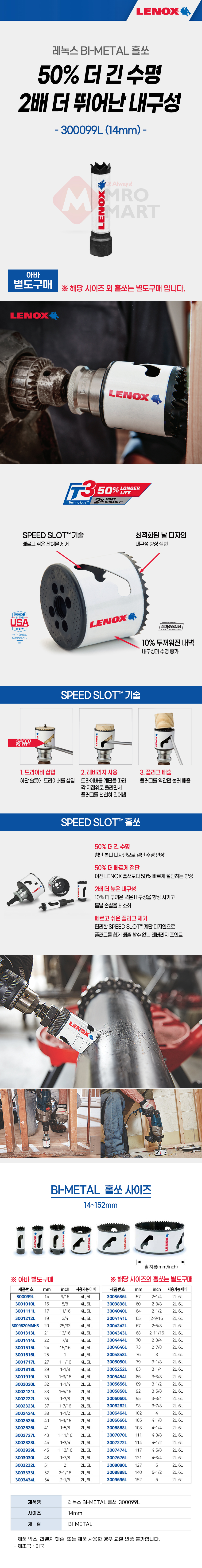레녹스 300099L 바이메탈 홀쏘 홀컷터 철공용 목공용 14mm