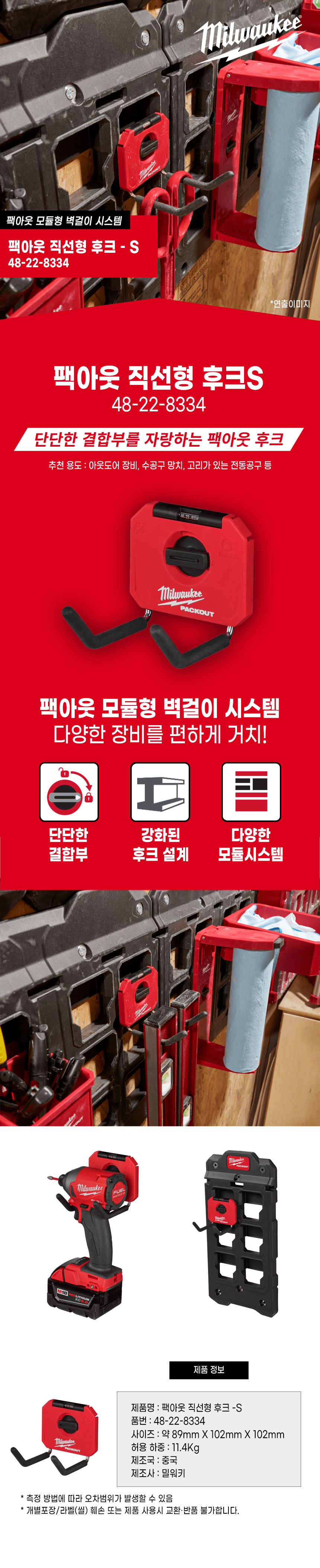 밀워키 팩아웃 직선형 후크 S 48-22-8334
