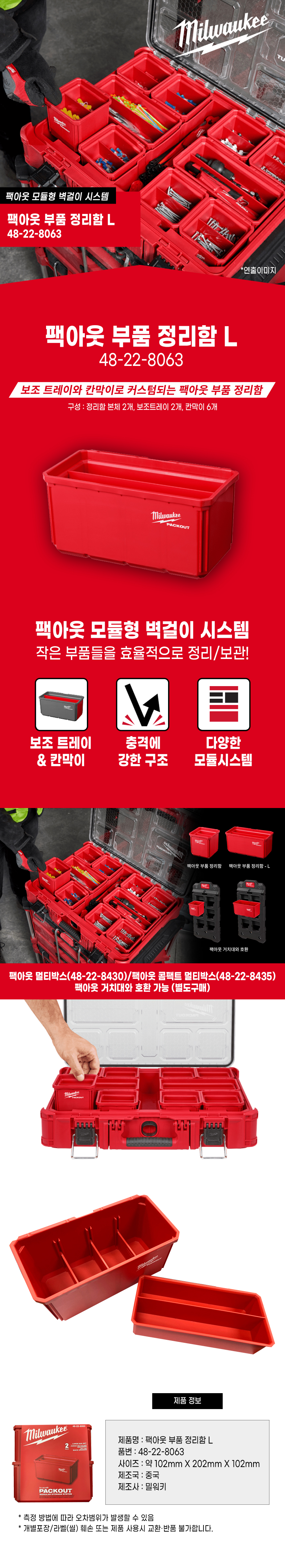 밀워키 팩아웃 부품 정리함 L 48-22-8063
