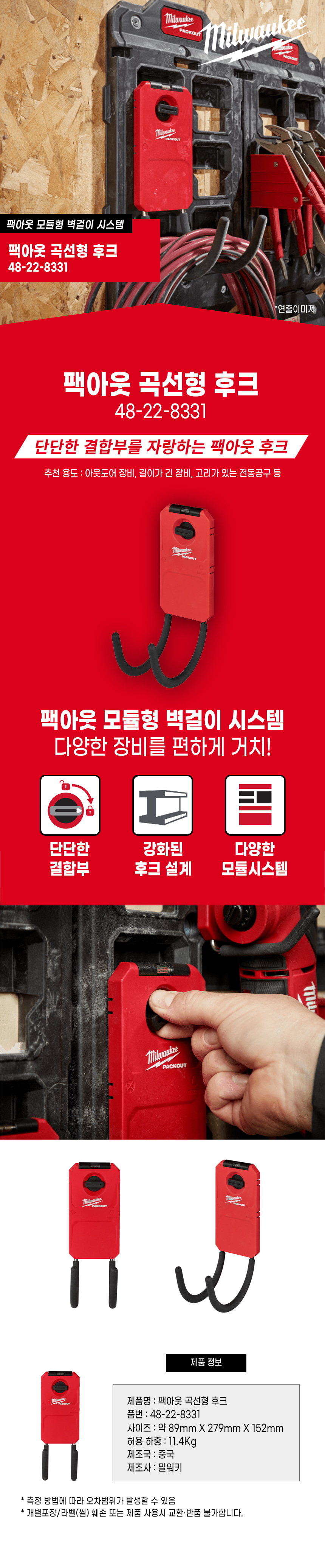 밀워키 팩아웃 곡선형 후크 48-22-8331