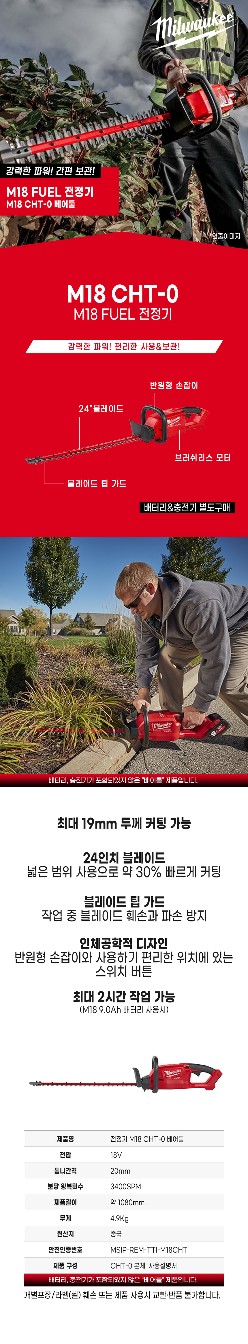 밀워키 18V FUEL 충전 전정기 베어툴 M18 CHT-0 가지치지 헤지 트리머 조경톱