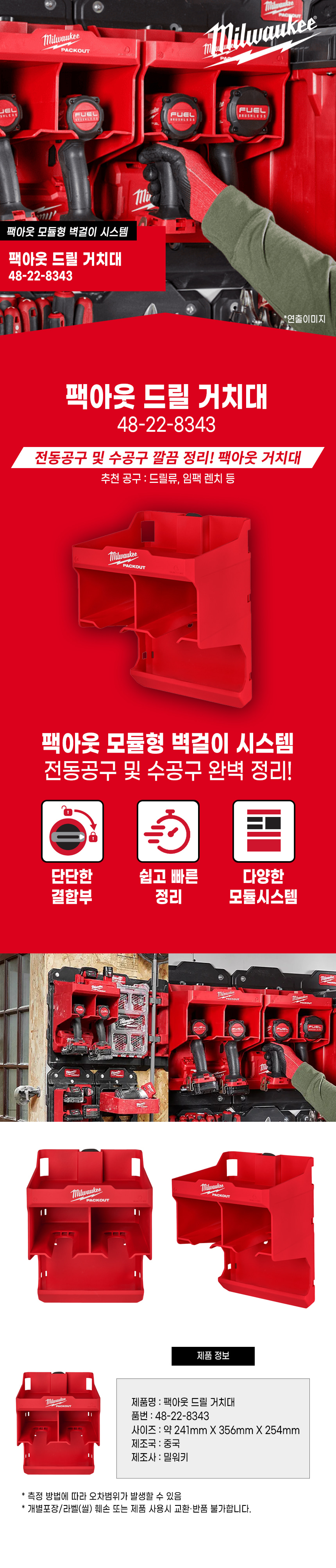 밀워키 팩아웃 드릴 거치대 48-22-8343