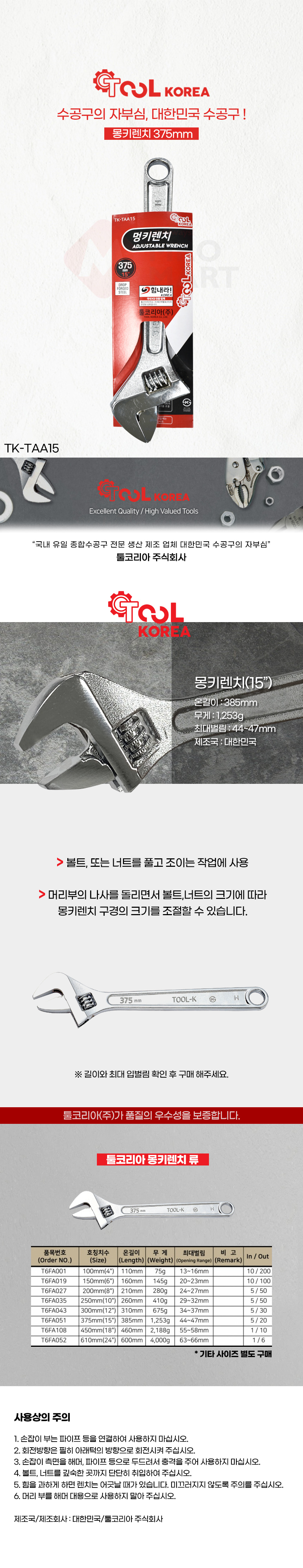 툴코리아 몽키 렌치 375mm 15인치 TK-TAA15