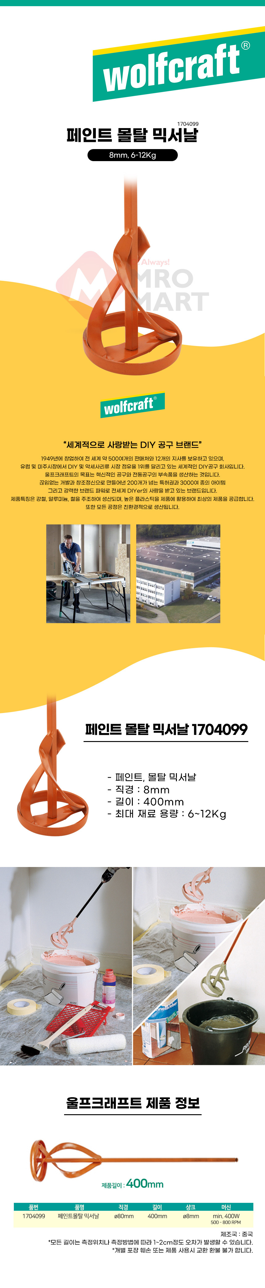 울프크래프트 페인트 몰탈 믹서날 1704099 교반기날 드릴날 믹서기 날개
