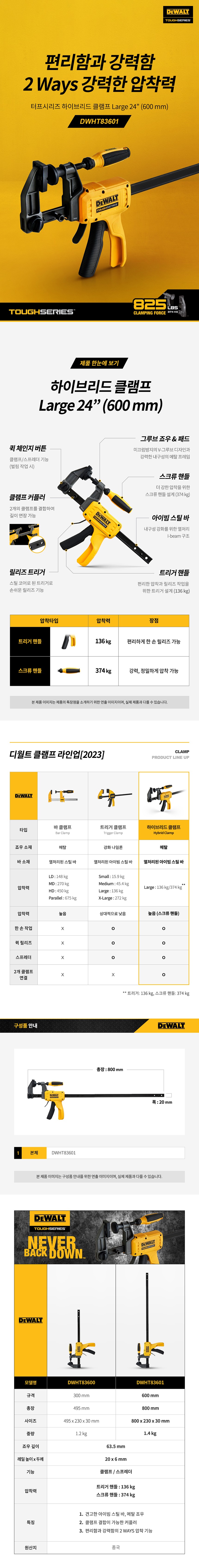 디월트 하이브리드 클램프 Large 24인치 DWHT83601 목공 목재 고정기 홀딩 바이스 트리거