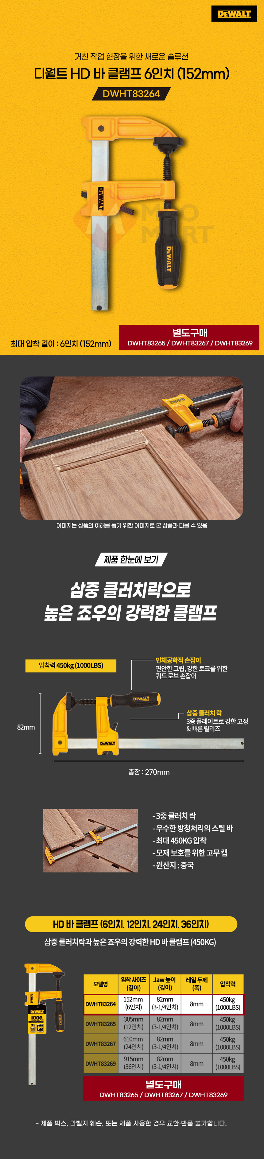 디월트 DWHT83264 HD 바 클램프 6인치 152mm 목재 목공 고정