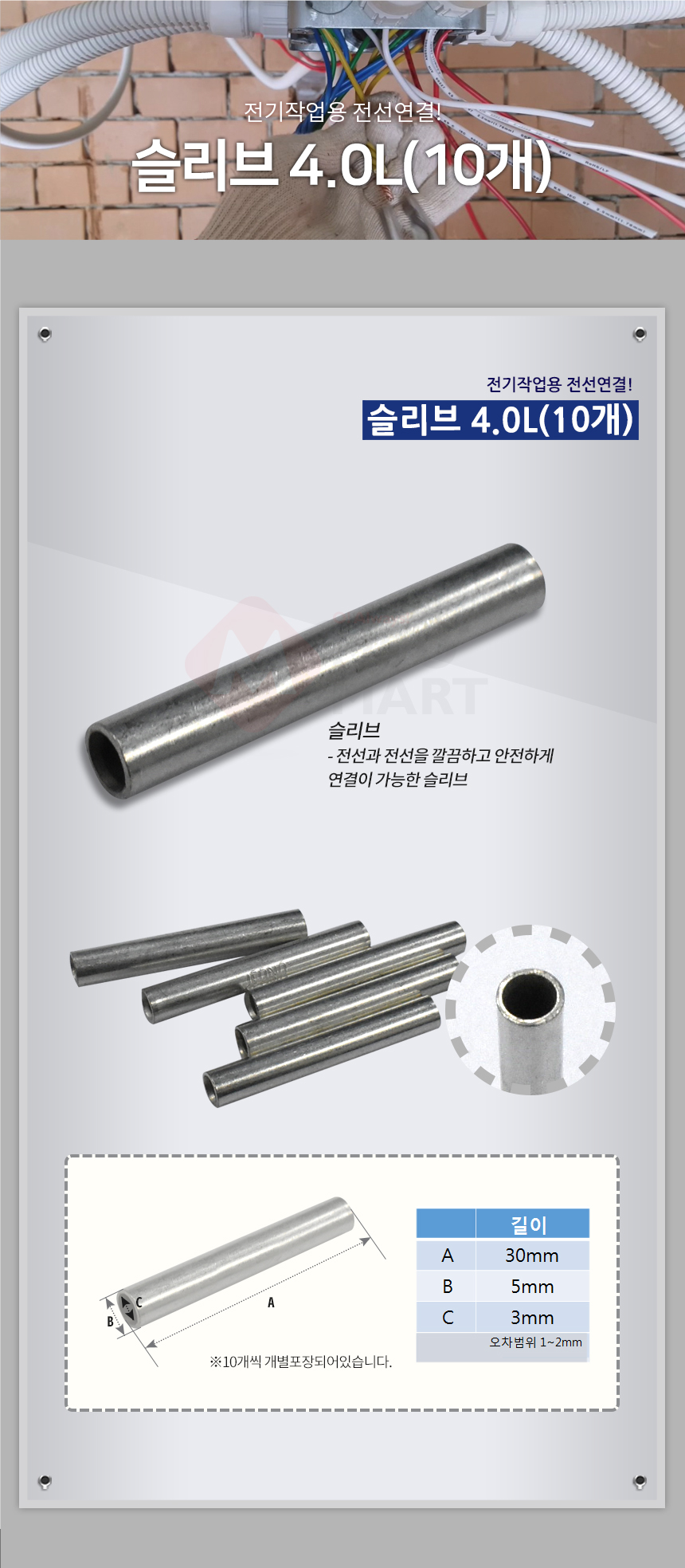 한올 슬리브4.0L(10개입) 전선연결 압착슬리브