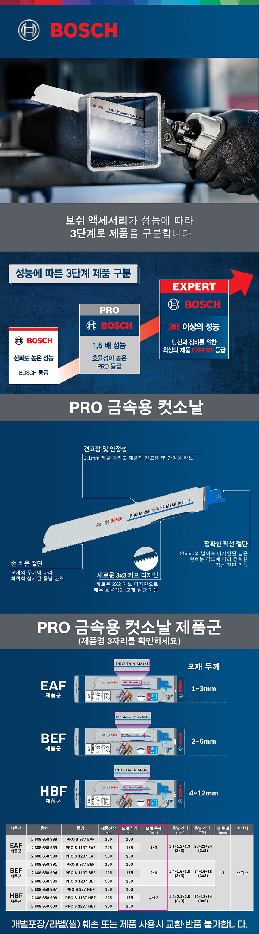 보쉬 PRO S937EAF날 1.1x25x150mm 컷소날 5개입 2608658988 컷쏘날 컷팅날 금속 철재 절단