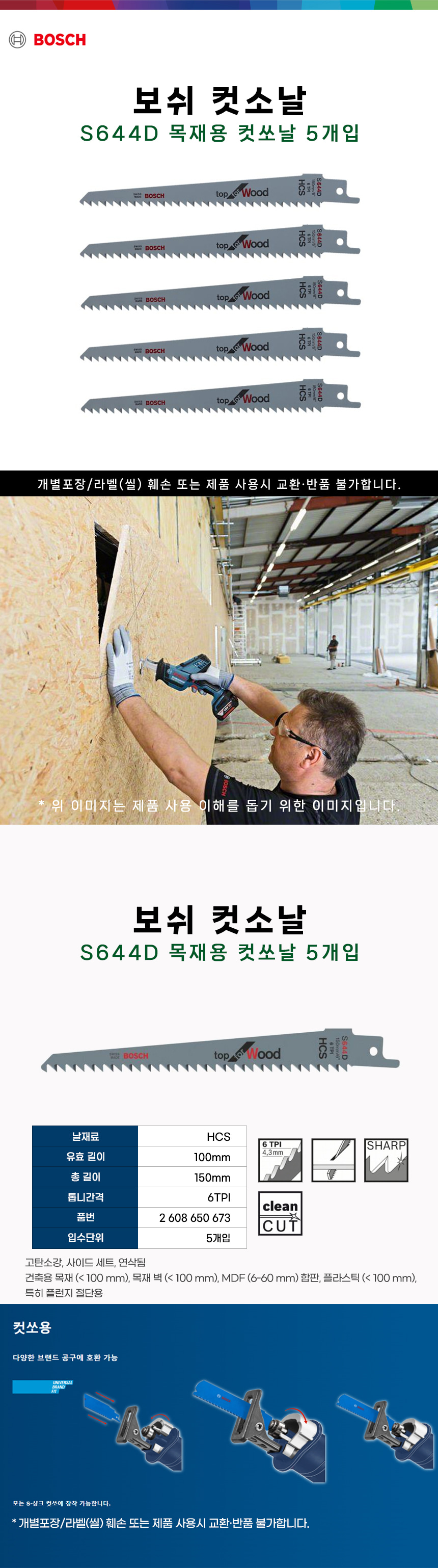 보쉬 S 644 D 목재용 컷소날 5개입 2608650673 컷쏘날 컷소기 날 목재 목공 우드
