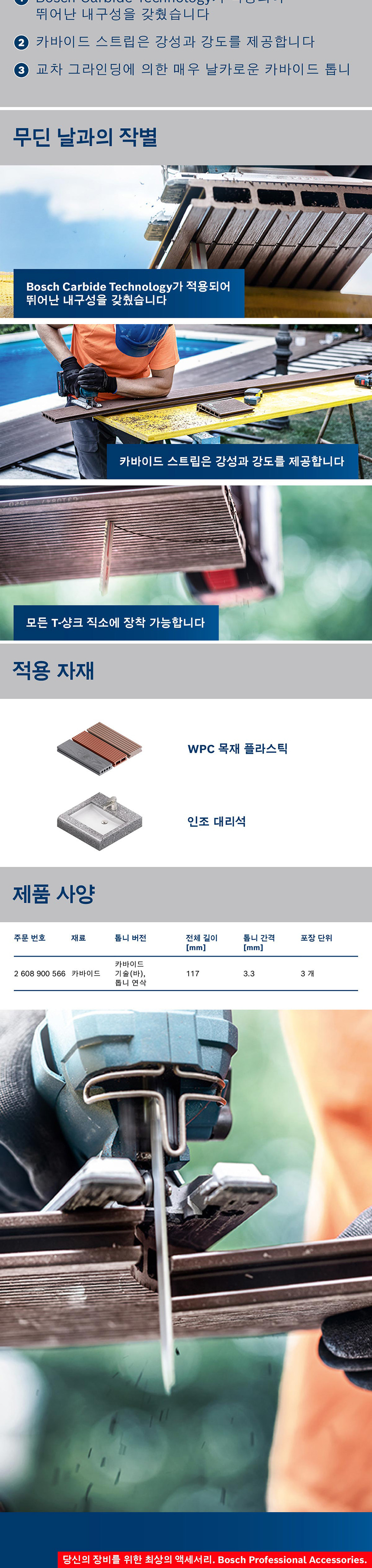 보쉬 EXPERT T 301 CHM 직쏘날 117mm 3개입 2608900566 직소 직쏘기 컷팅날 WPC 인조 대리석