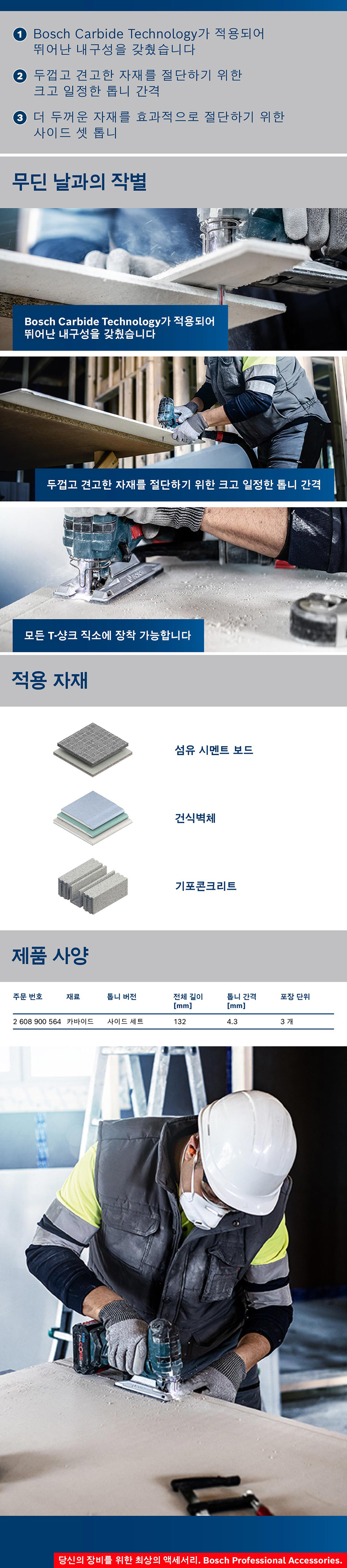 보쉬 EXPERT T 341 HM 직쏘날 132mm 3개입 2608900564 직소 직쏘기 컷팅날 건식벽체 시멘트보드 콘크리트