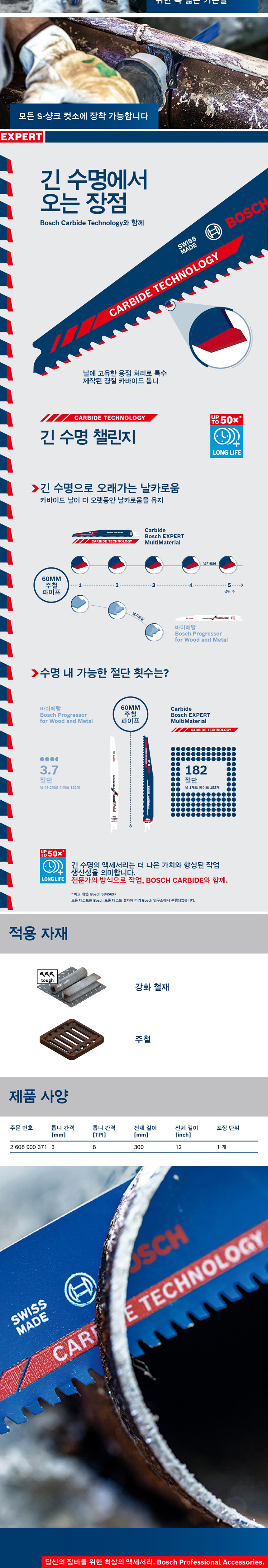 보쉬 EXPERT S 1255 CHC 컷소날 300mm 1개입 2608900371 컷쏘날 컷팅날 금속 철재