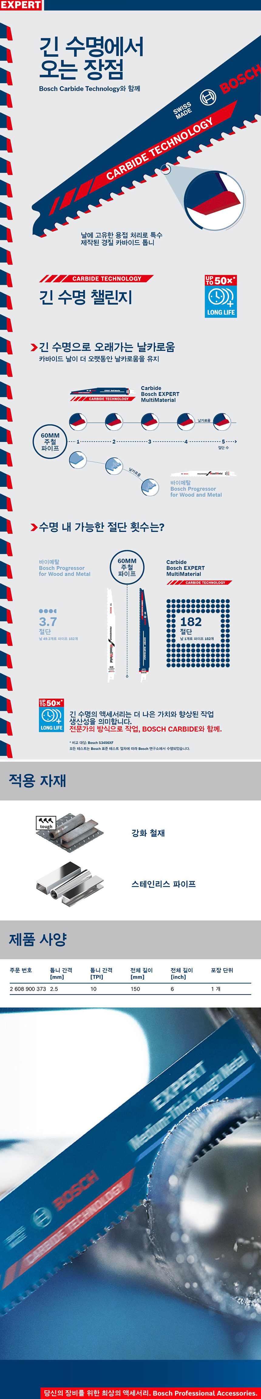 보쉬 EXPERT S 955 HHM 컷소날 150mm 1개입 2608900373 컷쏘날 컷팅날 철재 스테인리스 파이프
