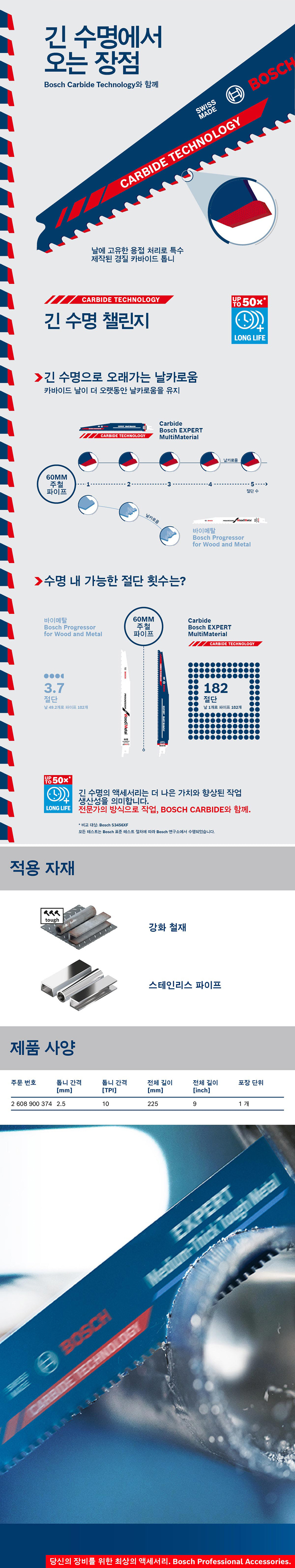보쉬 EXPERT S 1155 HHM 컷소날 225mm 1개입 2608900374 컷쏘날 컷팅날 철재 스테인리스 파이프