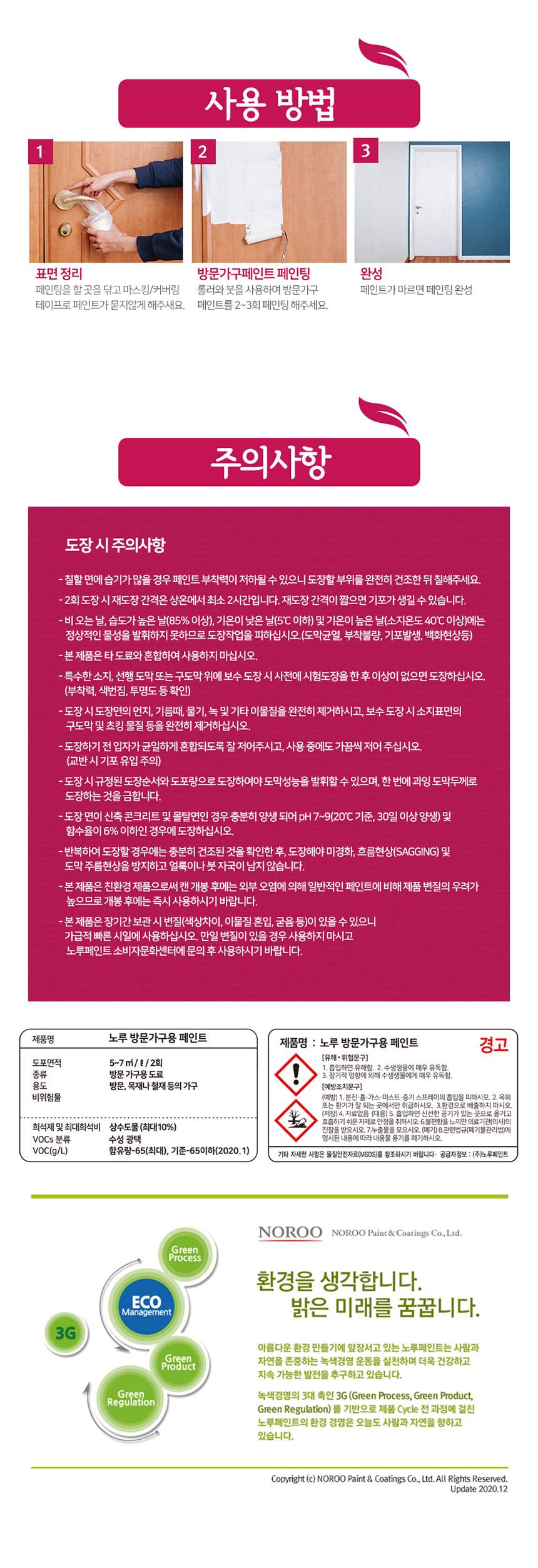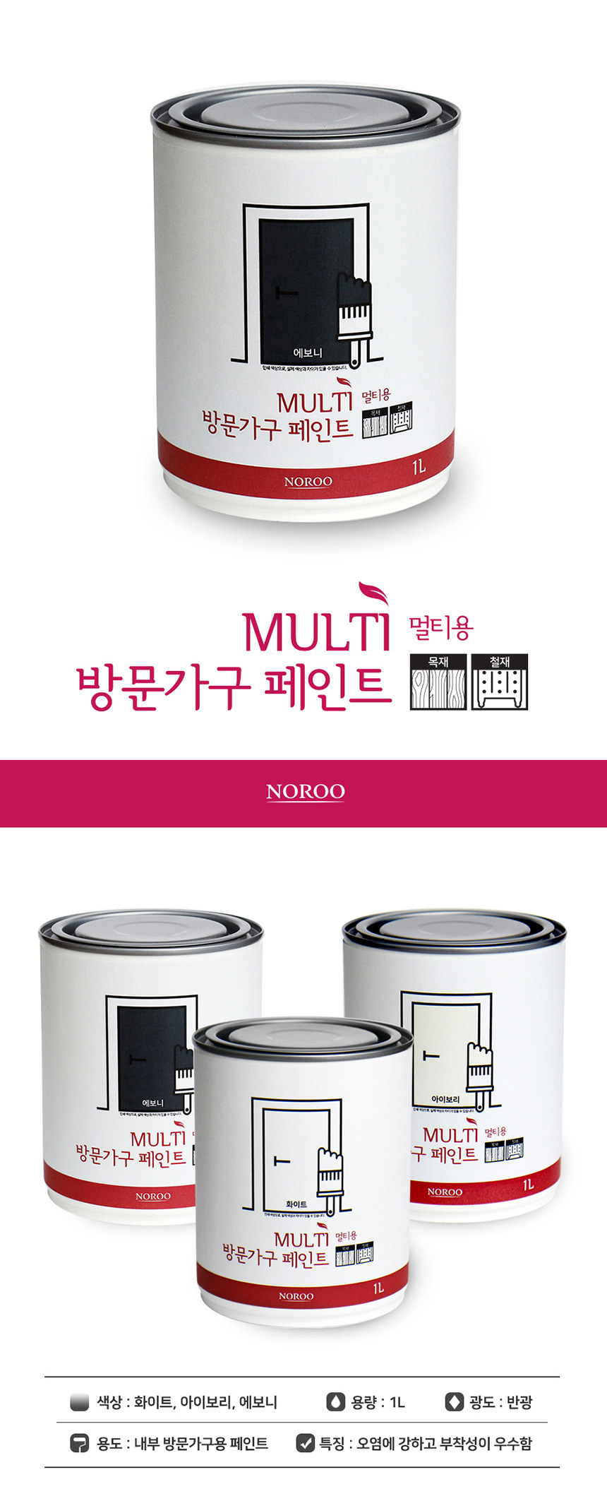 노루페인트 노루표 멀티용 방문 가구 페인트 1L 목재 철재 문틀 몰딩 수성 셀프 페인팅