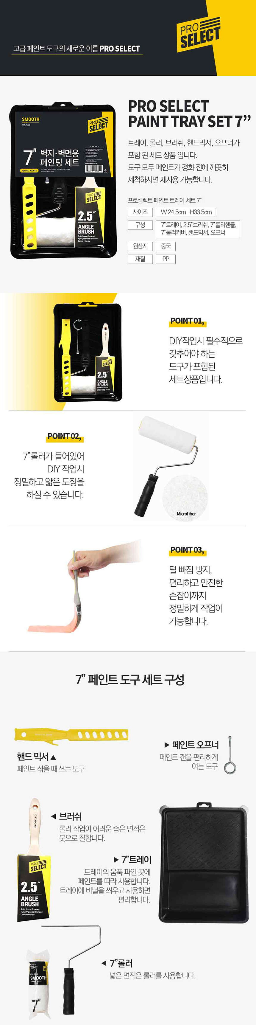 노루페인트 노루표 프로셀렉트 페인팅 세트 7인치 트레이 붓 롤러 핸드 믹서