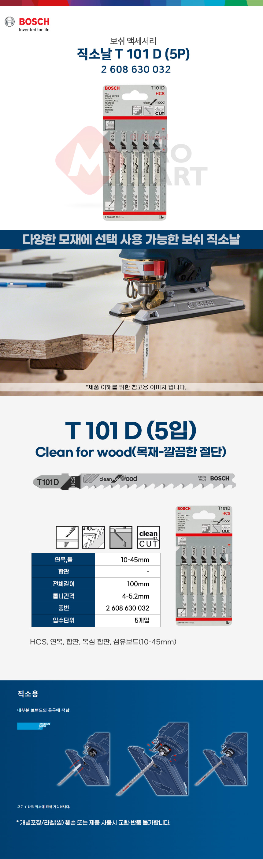 보쉬 직소날 T 101 D 5개입 2608630032 직쏘날 목재 나무 합판 100mm HCS
