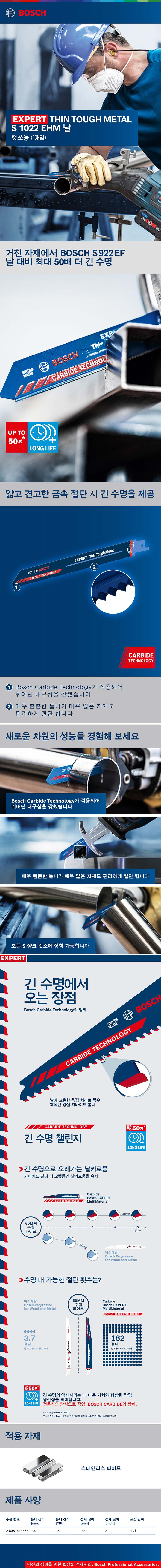 보쉬 EXPERT S 1022 EHM 컷소날 1개입 2608900363 컷쏘날 스텐 스테인리스 파이프